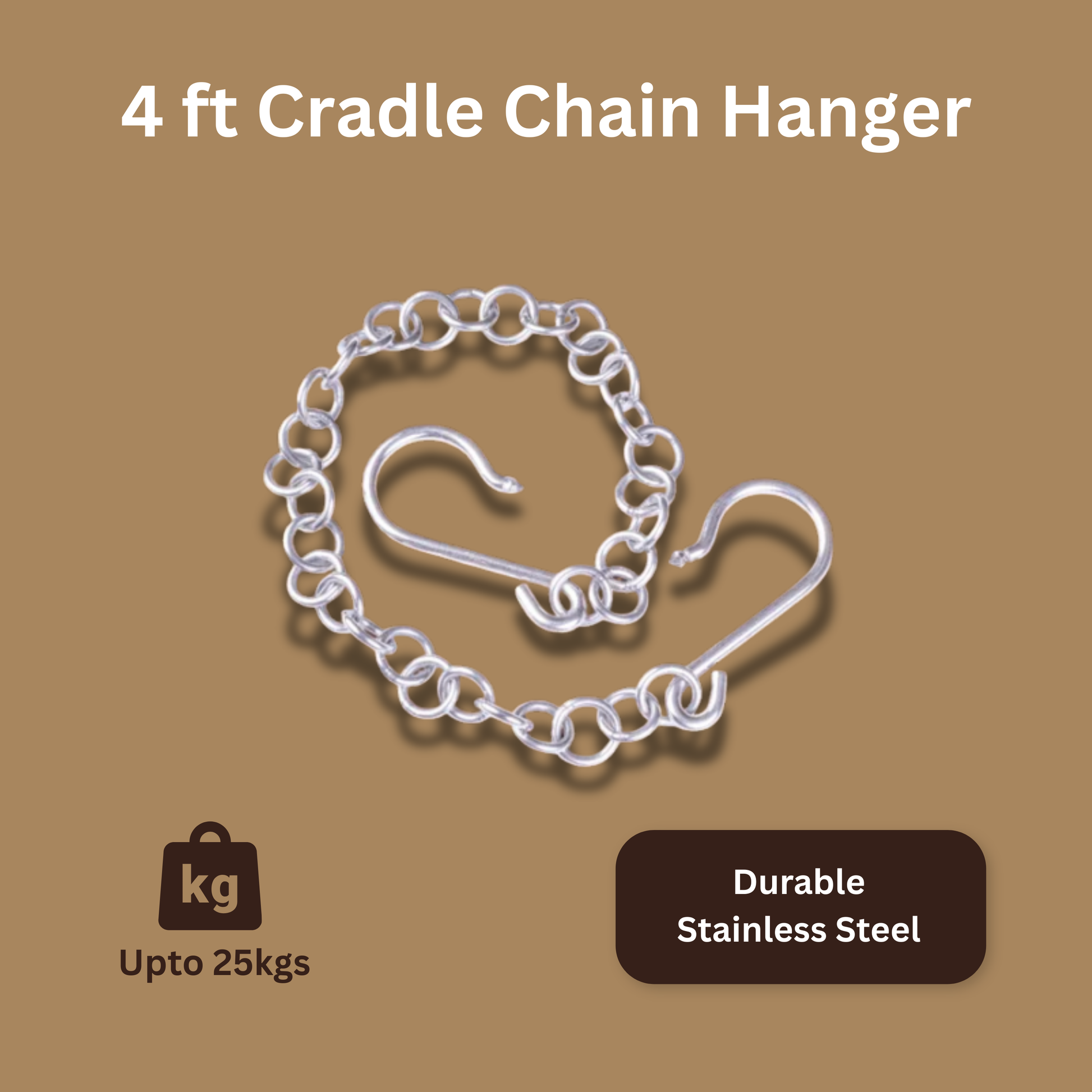 The 4ft Cradle Chain Hanger offers a robust and reliable solution for securely suspending cradles or swings. Crafted to provide optimal strength and durability, this hanger ensures safe and stable support. Its 4-foot length allows flexible installation heights, making it ideal for various indoor and outdoor setups. Designed with safety and longevity in mind, this chain hanger is perfect for reliable suspension with professional-grade performance.