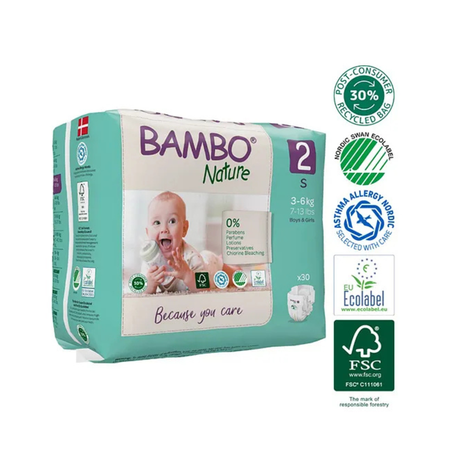 Bambo Nature Monthly Box - Skin Friendly Tape Style Diapers (size - 2) - Small (Pack Of 6 )