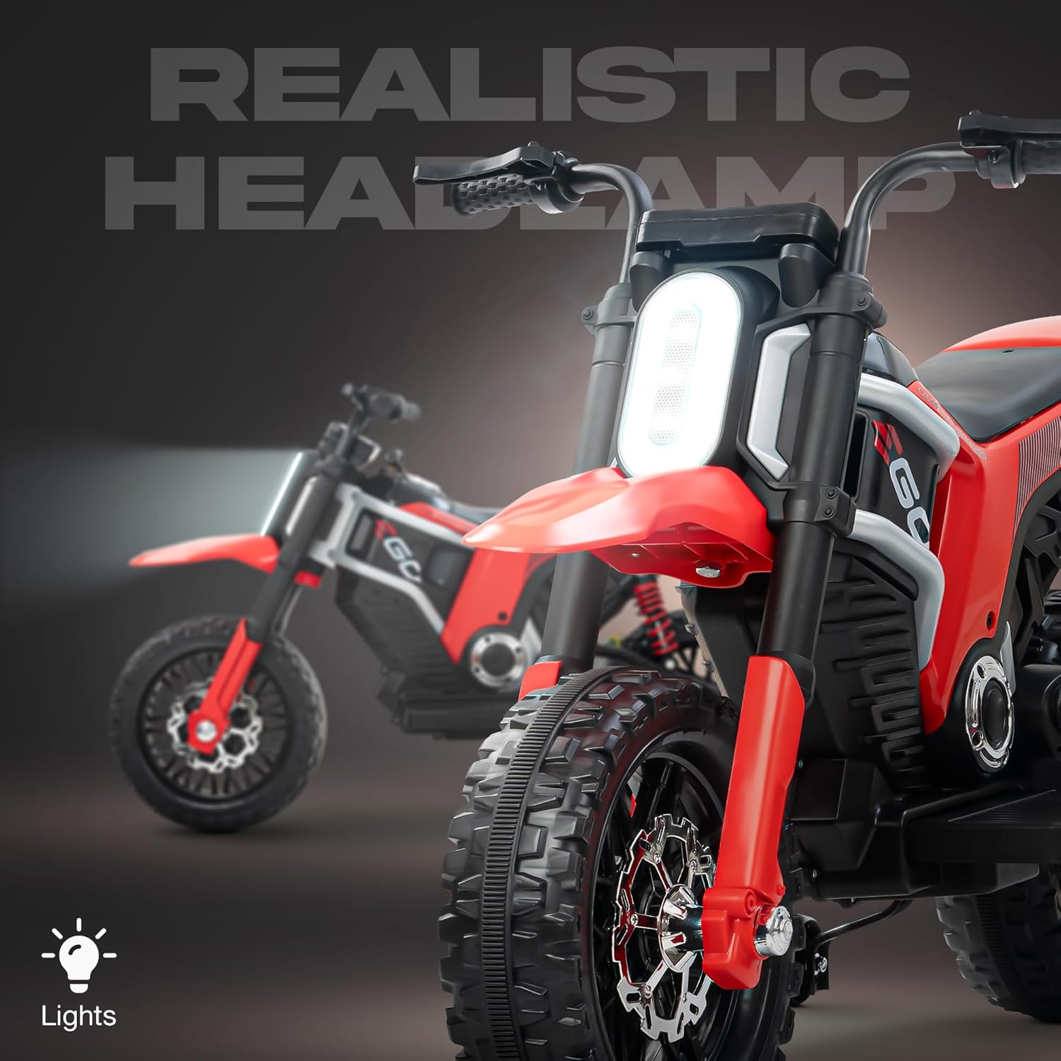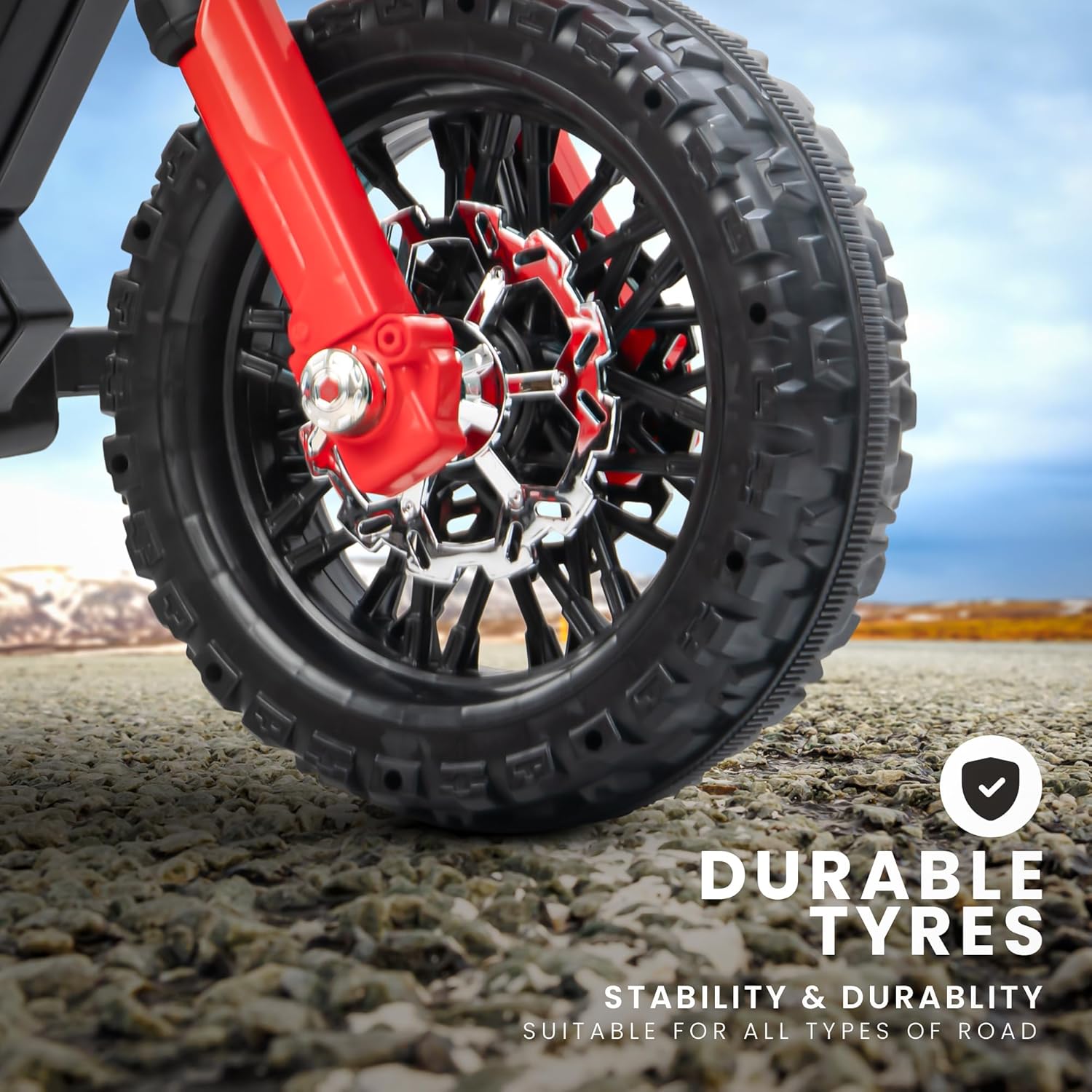 Baybee Motocross Electric Bike for Kids, Ride on Toys Kid's Bikes with LED Light & Music | Rechargeable Baby Bike | Battery Operated Bike for Kids to Drive 2 to 9 Years Boys Girl (Red)
