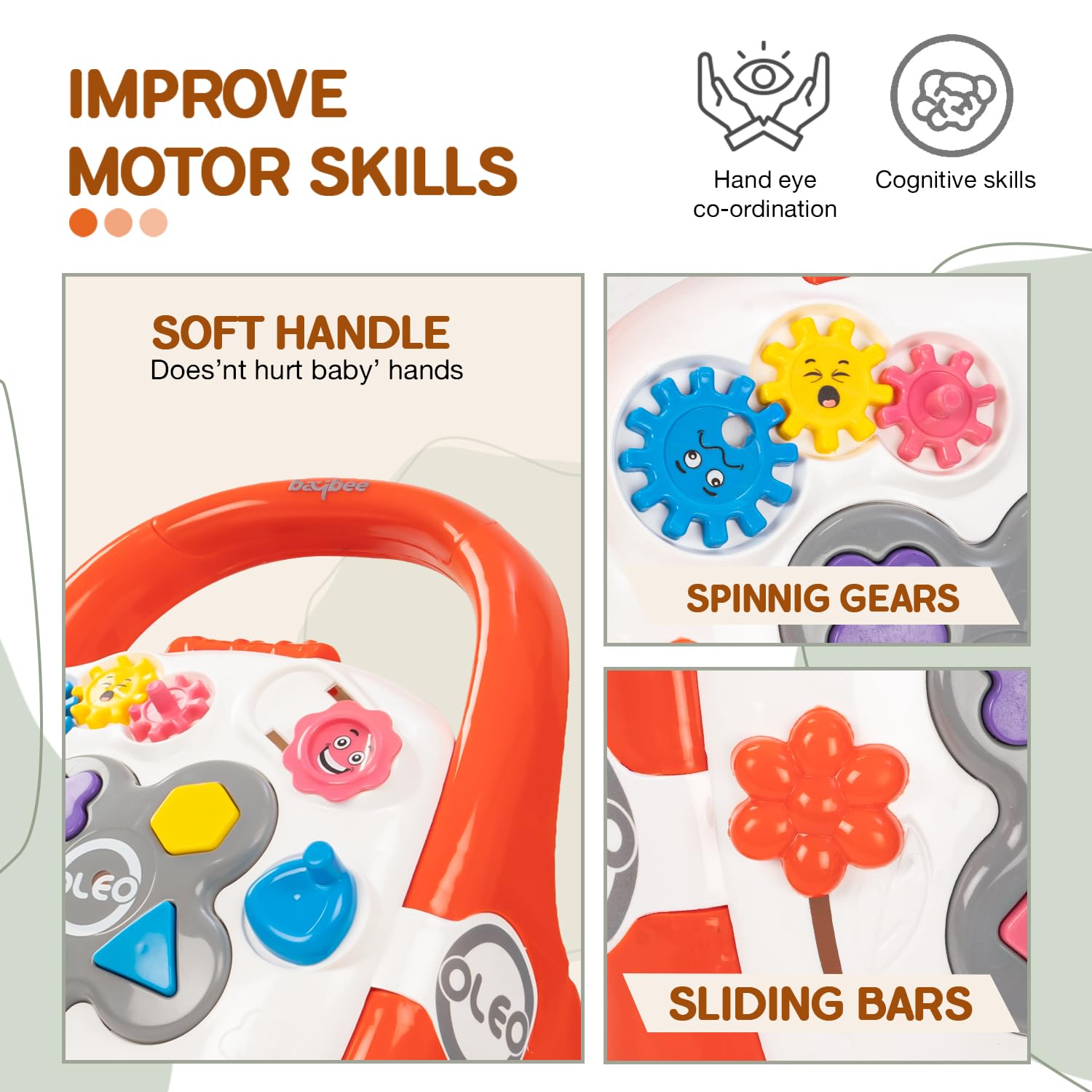 Baybee Oleo Baby Walker for Kids, Baby Activity Walker with Music, LED Light, Rotating Gears & Grip Push Handle | Kids Walker for Baby Toddlers | Baby Walker for 0 to 2 Years Boy Girl (Red)