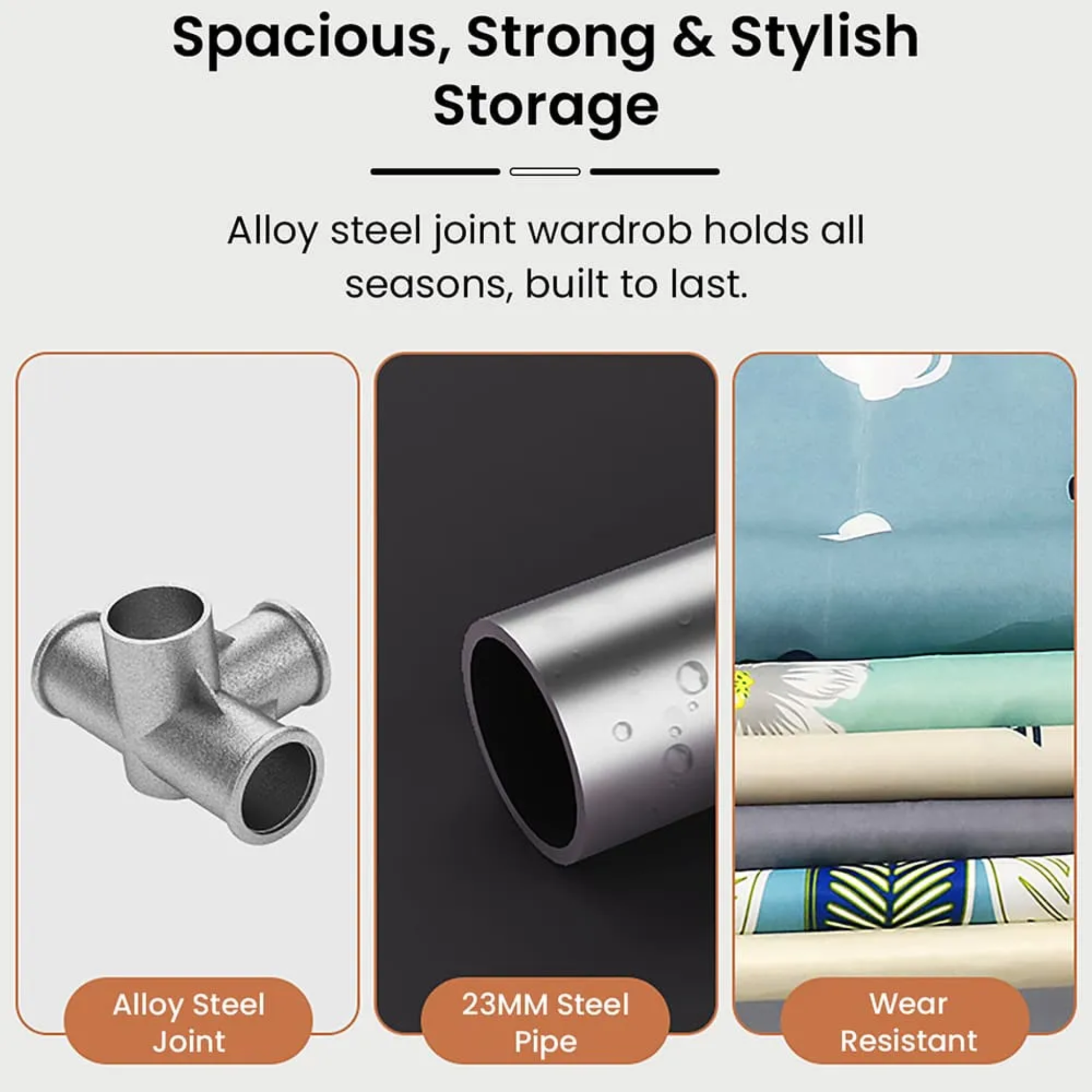 - 23mm Thickened Steel Pipe: Built with a reinforced 23mm thick steel frame, this collapsible wardrobe provides strong support, ensuring long-lasting use without bending or breaking. Its sturdy structure keeps your clothes, accessories, and other essentials well-organized and protected.