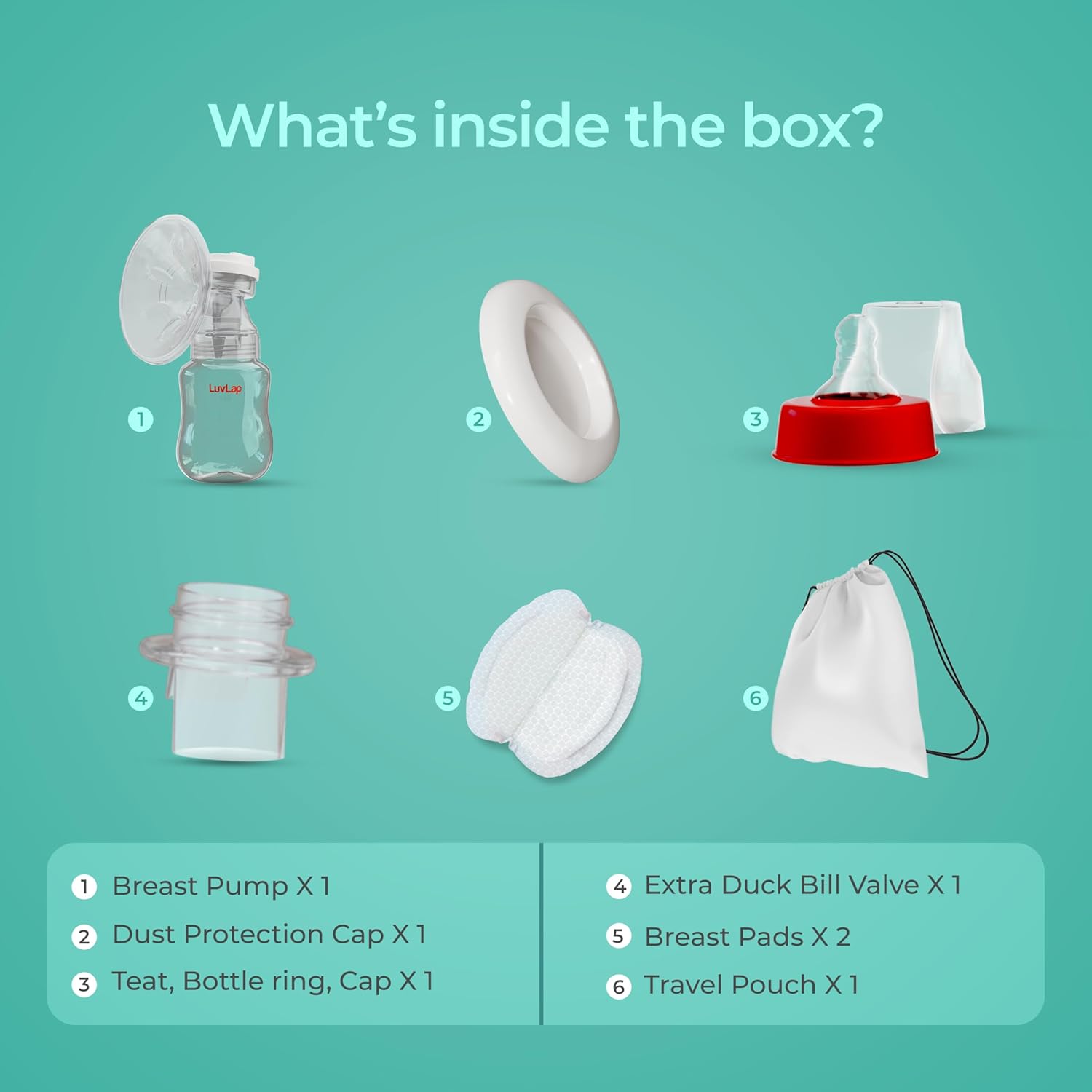 LuvLap Manual Breast Pump | Soft Massage Cushion Gentle On Skin | BPA Free | 2 Free Breast Pads