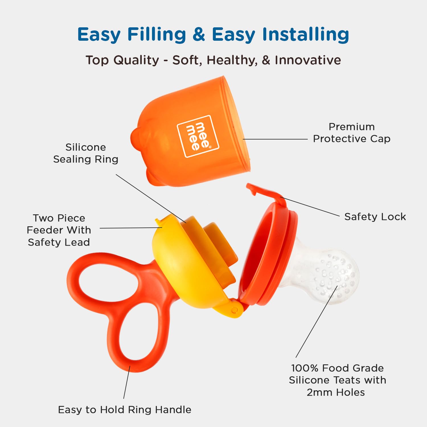Mee Mee Advance Fruit & Food Nutritional Tiny Taste Feeder With Feed Pusher | Free Extra Soft Silicon Sack (4M+)
