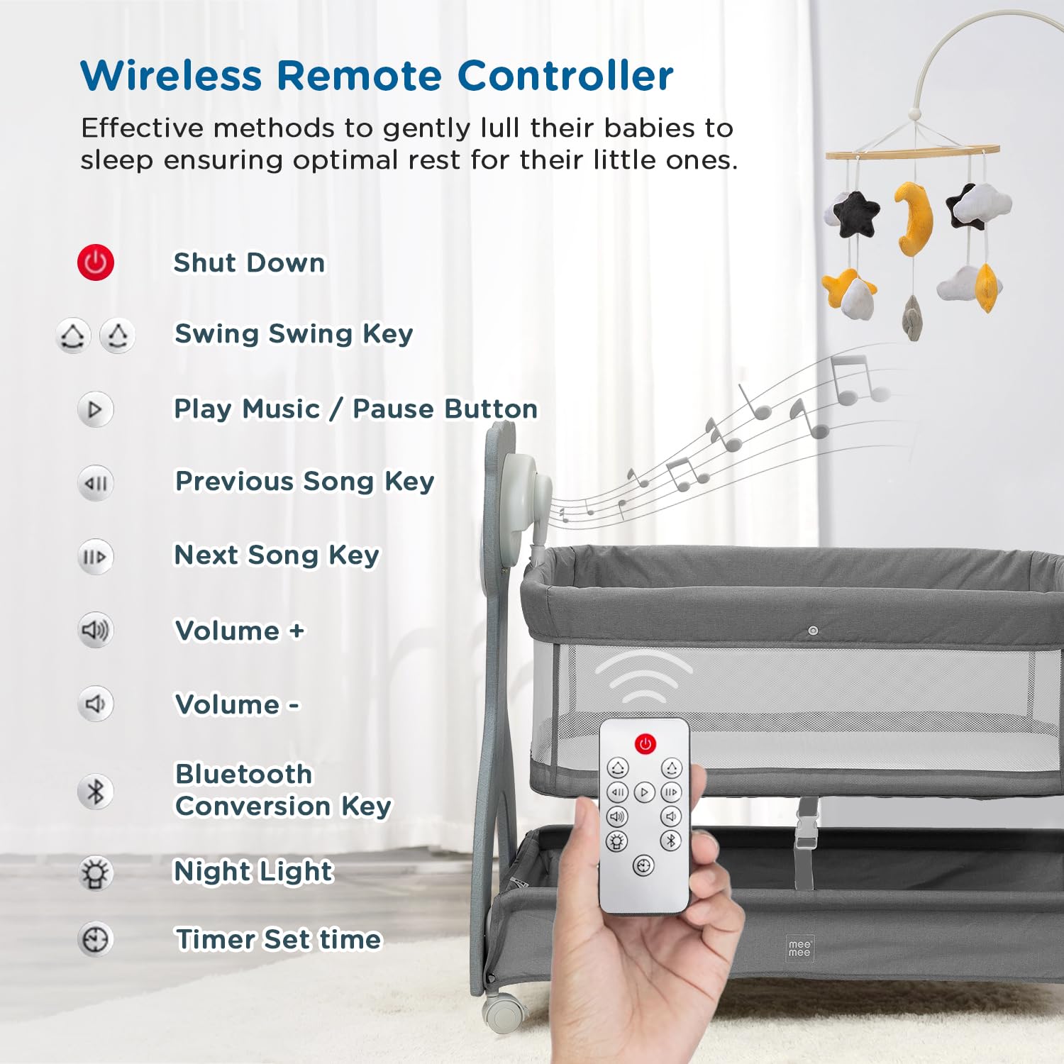 Mee Mee Sweet Love Automatic Electric Cradle for Baby | Remote Controlled 3 Gear Swing | Lightweight Baby Cot with Mosquito Net & Cot Mobile | Designed for 0-1.5 Years Kids | Carry Upto 15kgs (Grey)