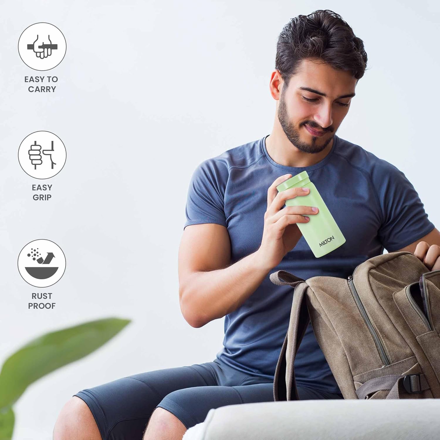 Milton Minimate 200 Thermosteel Insulated Water Bottle, 190 ml, 24 Hr Hot and Cold | Leak Proof Lid, ISI Certified I Vacuum Insulated | for Office, Gym, School | Light Green