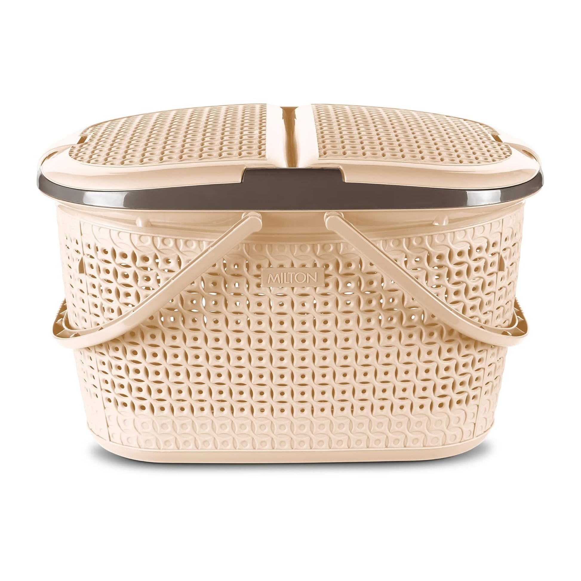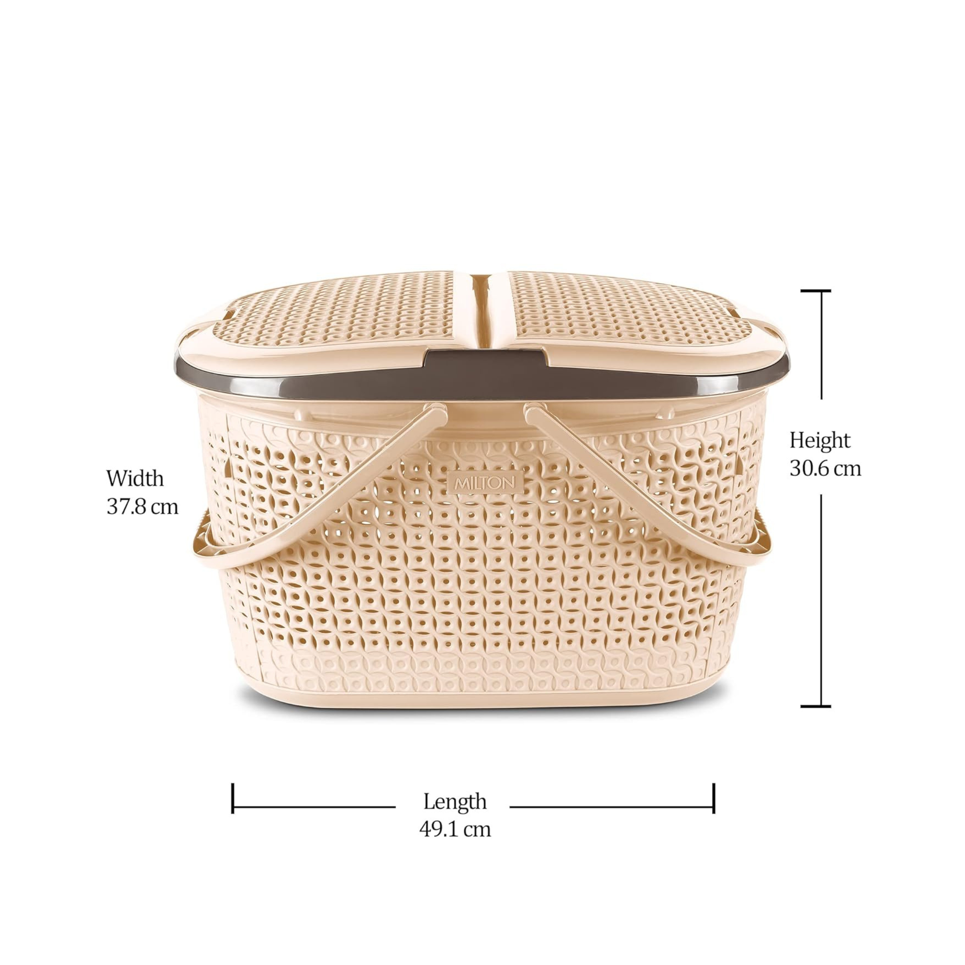 Milton Pluto Picnic Basket with Two Side Opening Lid and with Handles, 1 Piece, (49.1 x 37.8 x 30.6 cms) Ivory| Multipurpose | Toy | Clothes | Shopping | Accessories | Easy to Carry