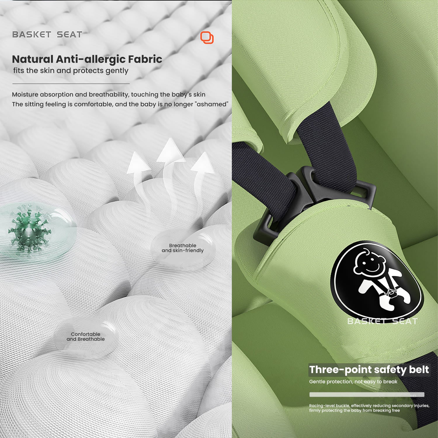 StarAndDaisy Infant Baby Carry Cot Car seat with safety Belt For 0-15 Months & weight Capacity Upto 13 Kg – Green